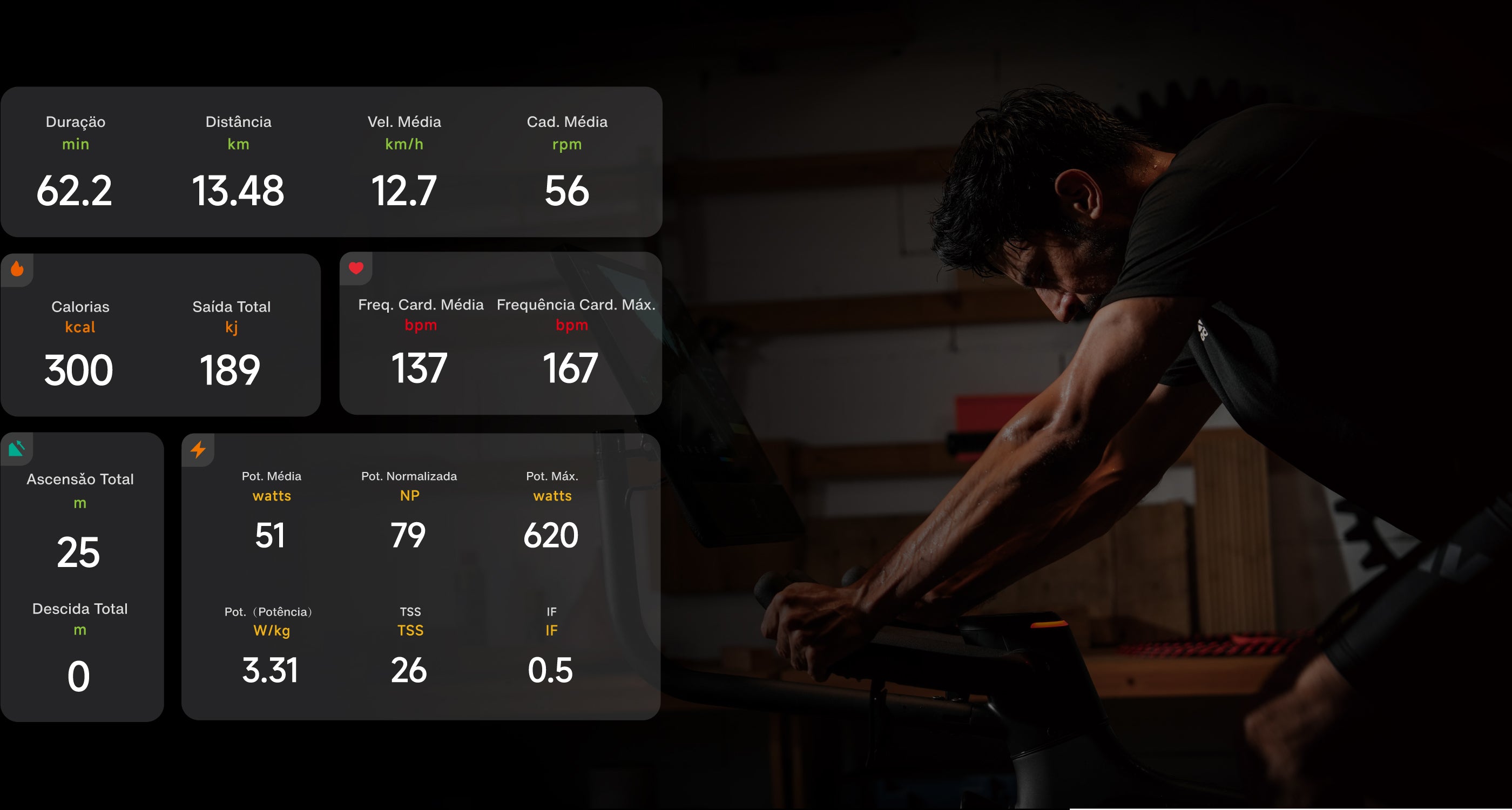 Termine cada pedalada com um relatório profissional: a IA sintetiza dados multimétricos e retorna dicas específicas que você pode aplicar no seu próximo pedalada.