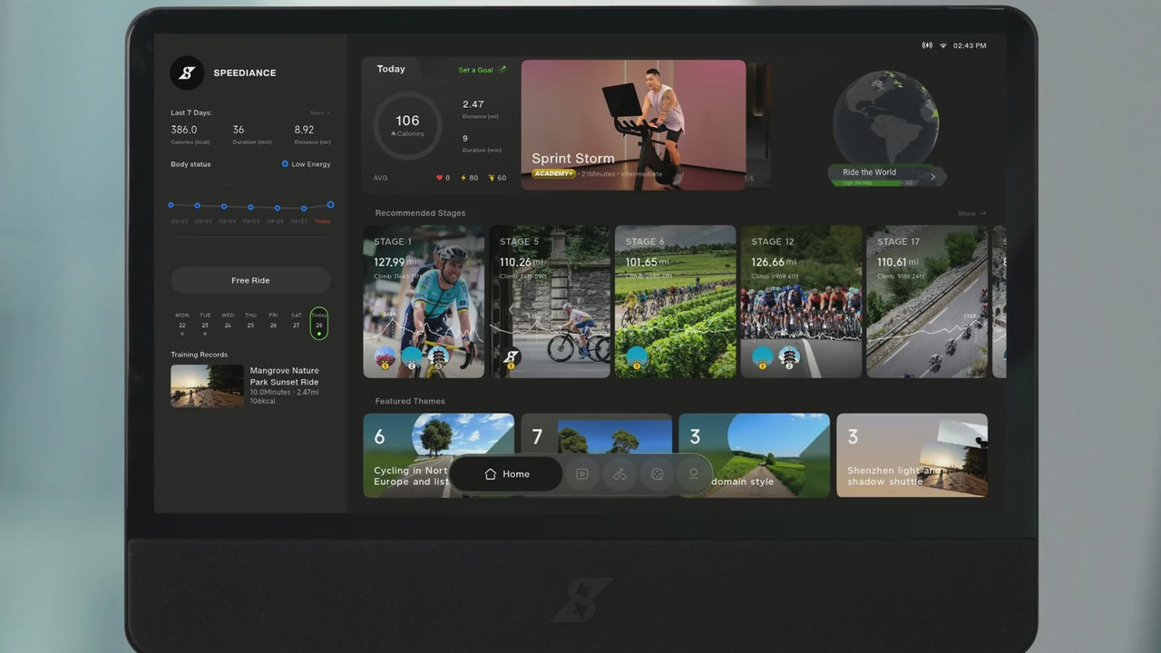 Esta bicicleta pode se conectar ao Zwift, Strava, dispositivos Android, relógios Apple e muito mais. Em qualquer tela, você pode ver uma grande quantidade de dados de desempenho exibidos na parte inferior para otimizar seu treino.